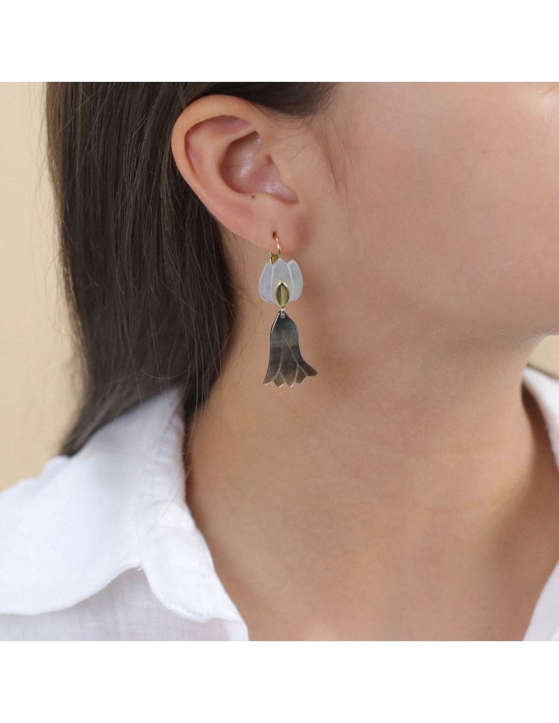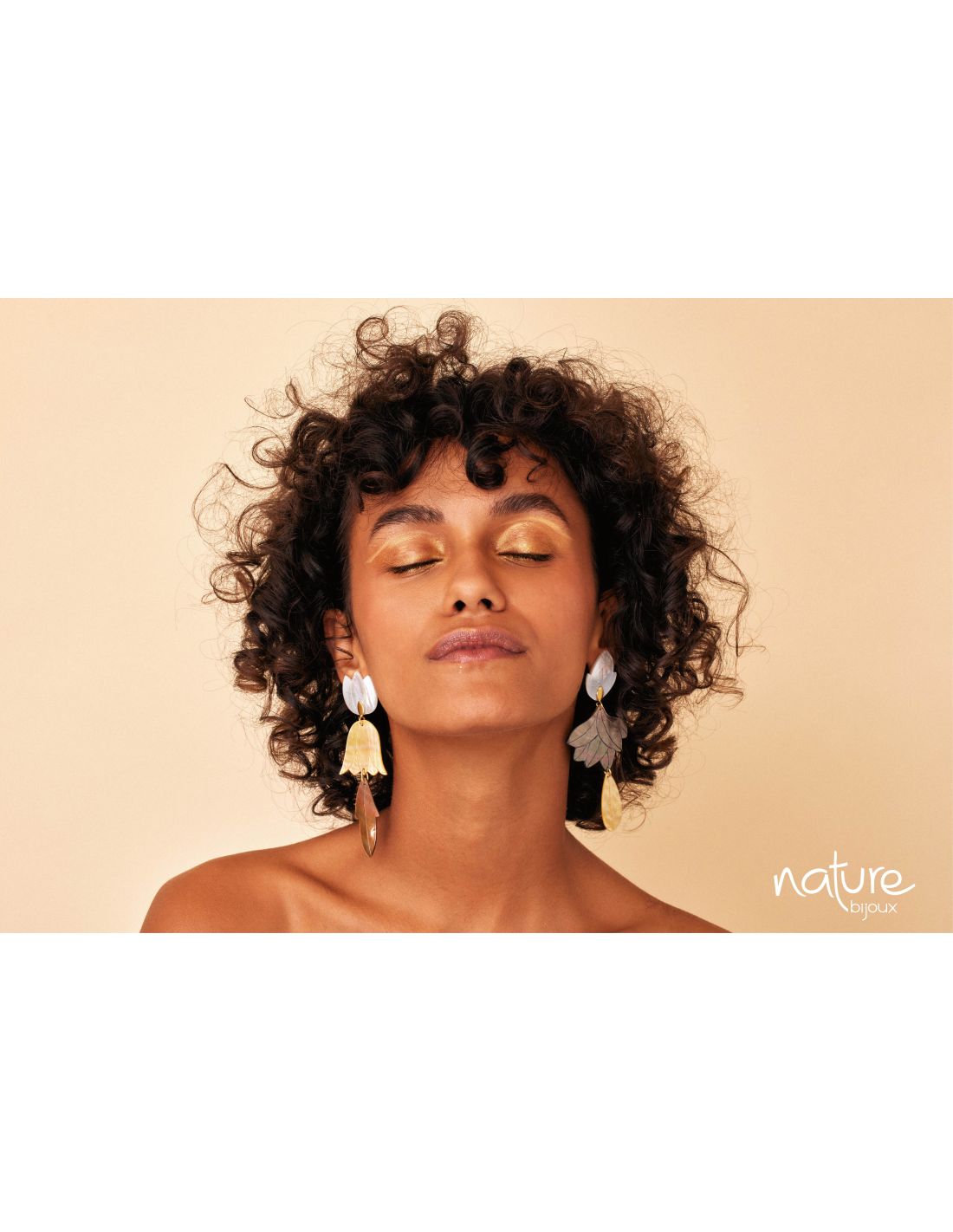 Ces belles dormeuses collection Mon Jardin signée Nature Bijoux sont des boucles d'oreilles asymétriques avec 4 variétés de nacre : dorée, noire, brune, blanche pour un superbe résultat