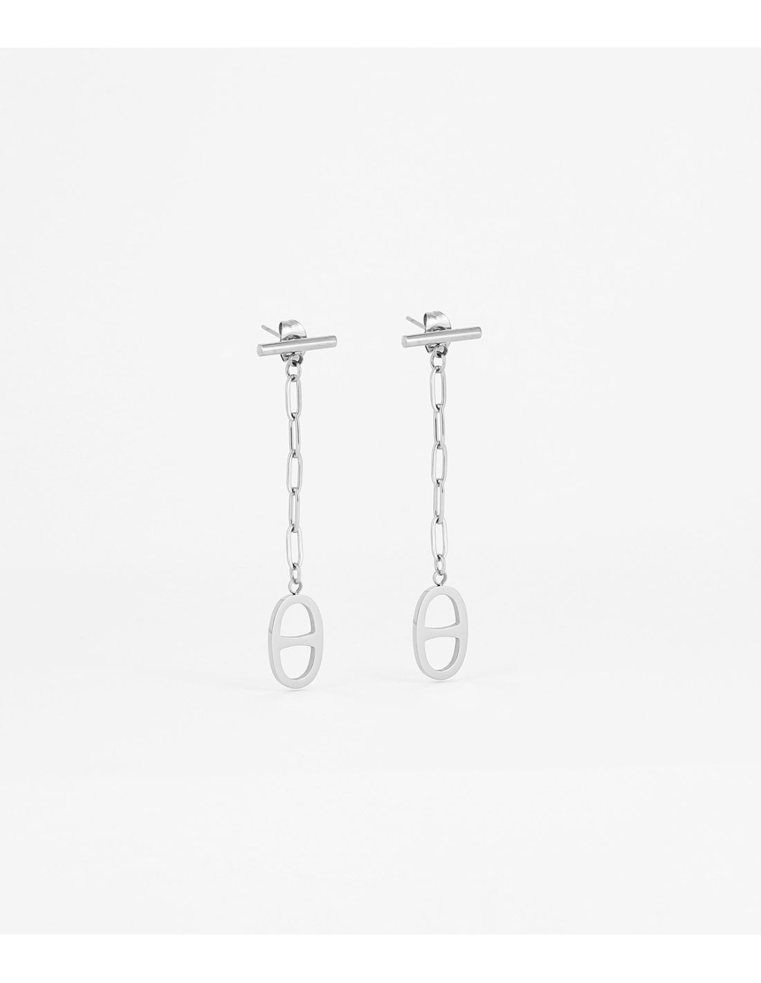Les boucles d'oreilles Zag Daniela acier sont des boucles d’oreilles avec chaîne en acier uni sur laquelle un motif ovales est suspendu et une barrette forme le top
