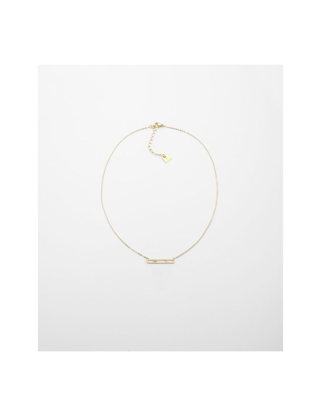 Le collier Zag Trinity acier doré est un collier chaîne en acier doré à l’or fin décoré d’un rectangle de métal ajouré abritant trois cristaux blancs en serti clos.