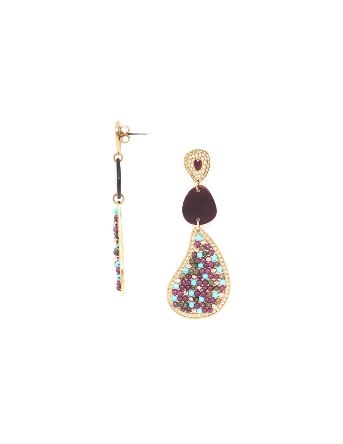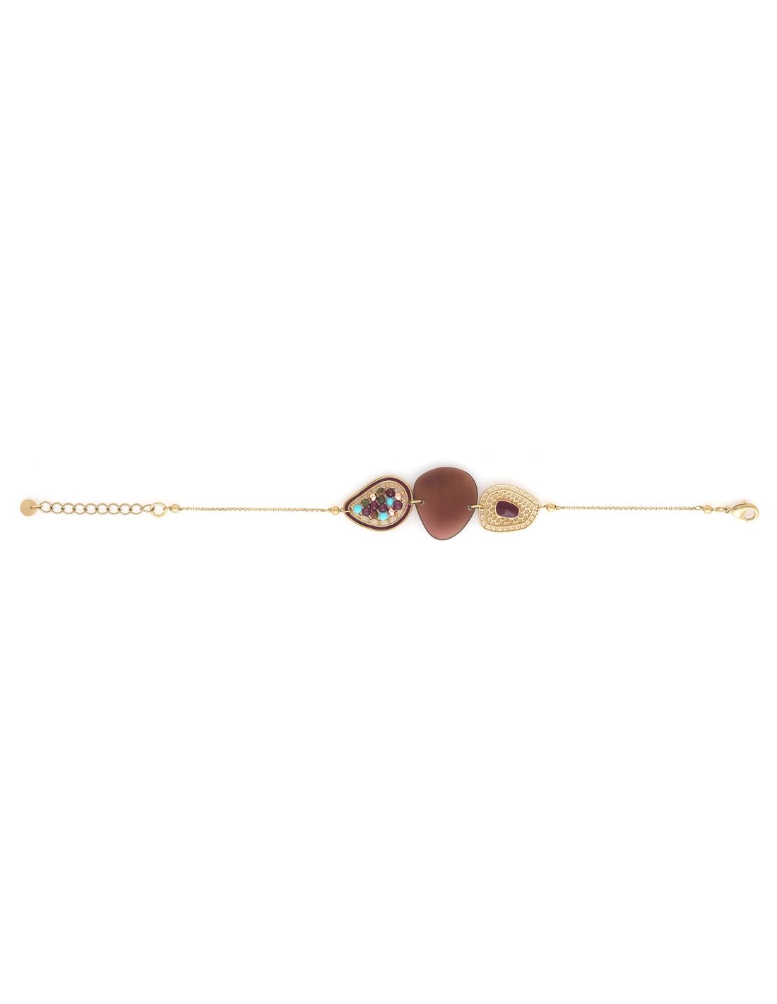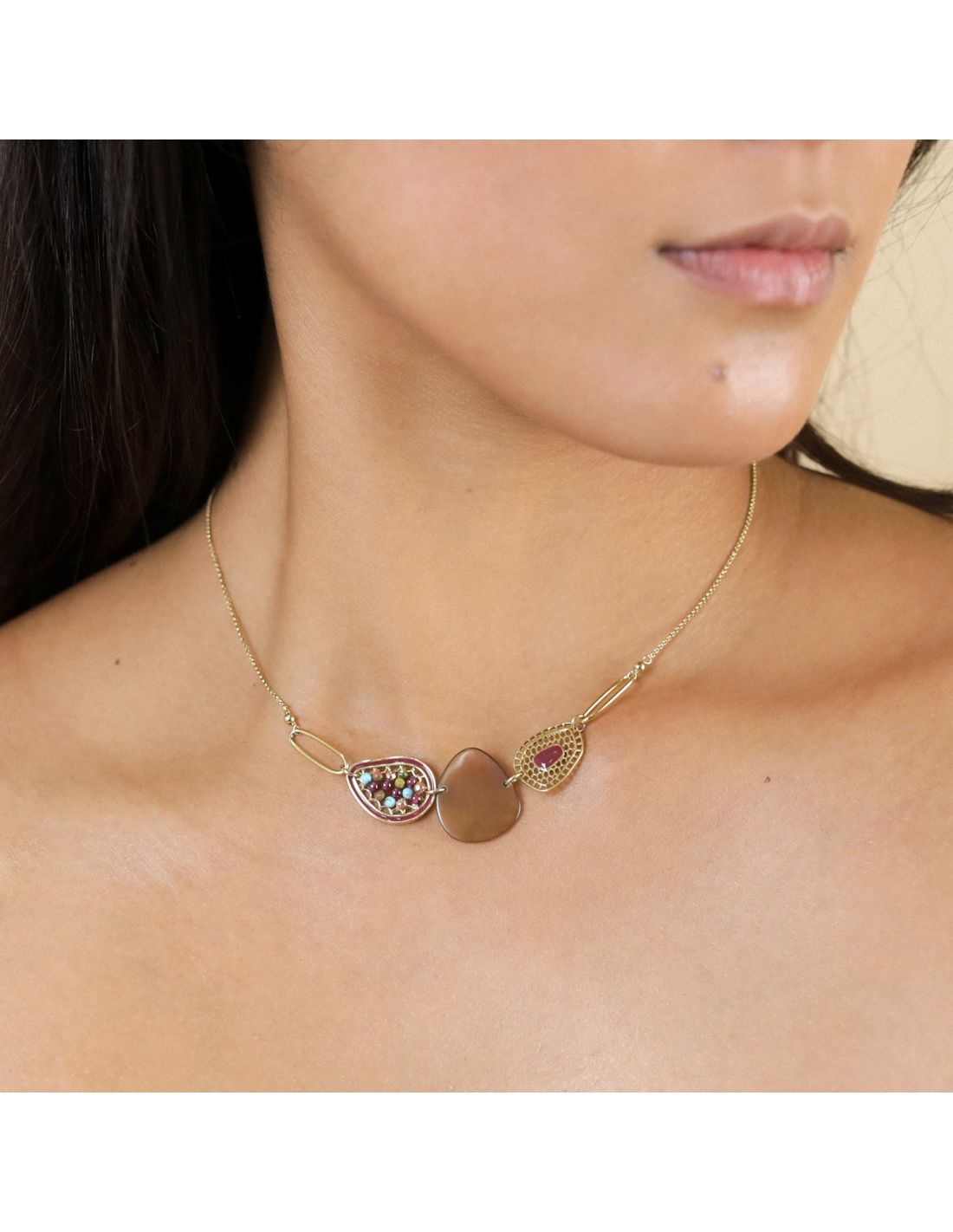- Grenat, howlite, hématite, nacre, laiton, étain, dorure or fin